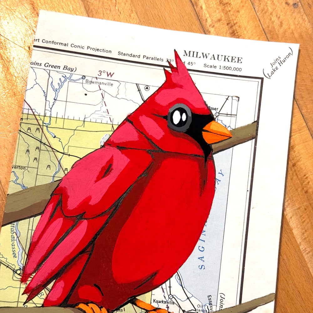 original gouache and ink painting on a cropped 1950s flight chart