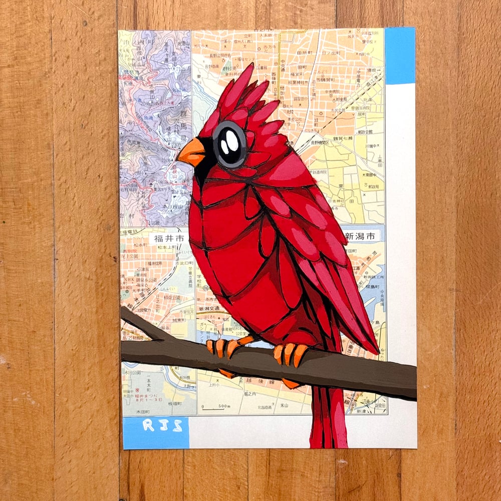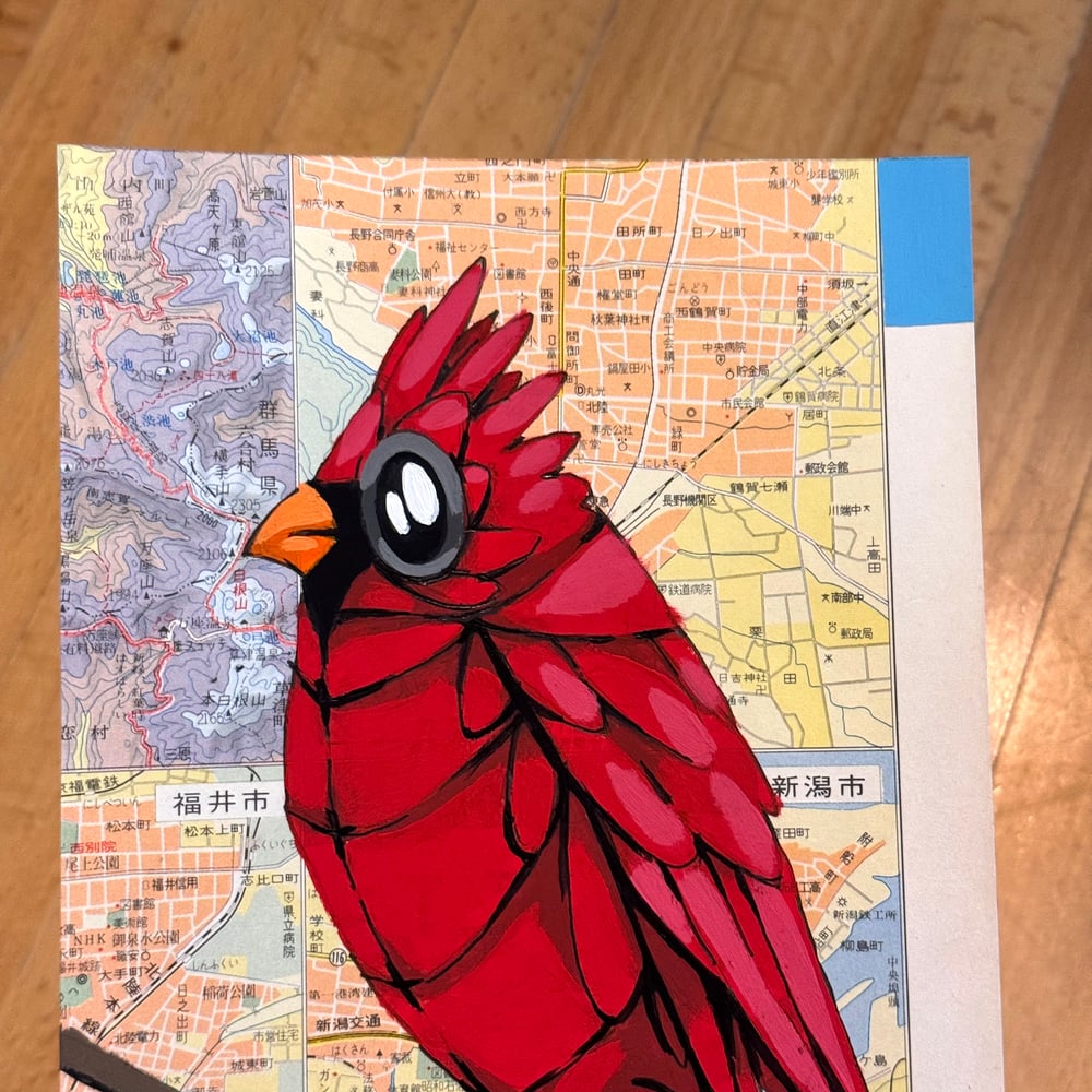 original gouache and ink painting on a cropped 1960s Japanese atlas page