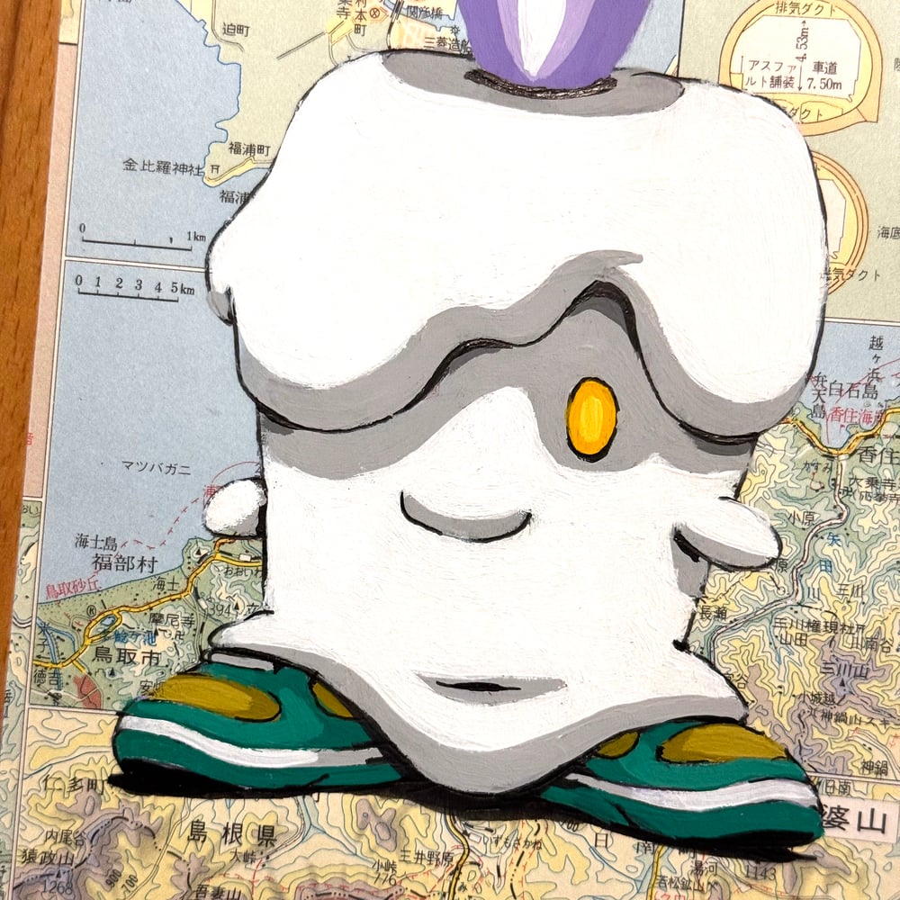 original gouache and ink painting on a cropped 1960s Japanese atlas page